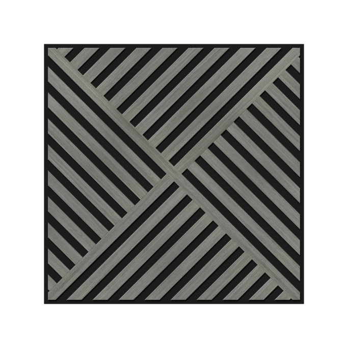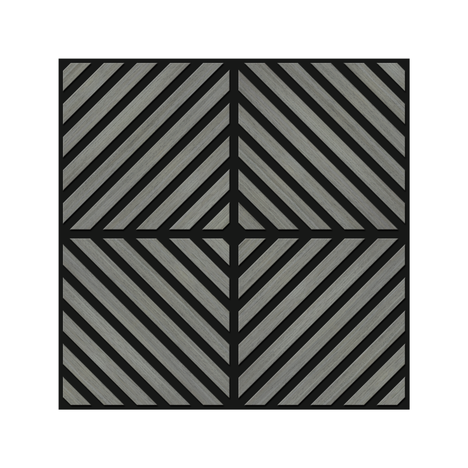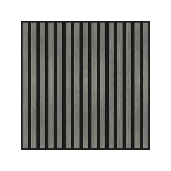 Palillería acústica de formato vertical en tono gris oscuro. Carácter moderno y sobrio con una excelente capacidad de absorción acústica.